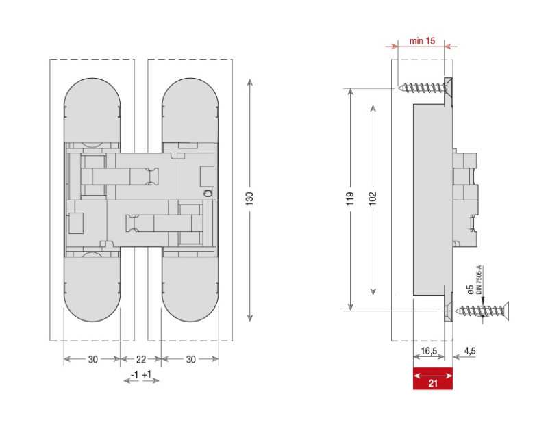 Подходит для дверей с минимальной толщиной 35 мм Повышенная универсальность: зарезка по центру дверей толщиной от 35 до 45 мм Подходит в случае использования декора до 15,5 мм Общая длина 130 мм Глубина всего 21 мм Ширина 30 мм 3D регулировка S.T.A.R.S. Нагрузка: 2 петли — 55 кг, 3 петли — 70 кг Легкая установка и симметричная зарезка Благодаря новому внешнему корпусу из оцинкованного замака петля более устойчива к окислению. Обновлена центральная часть для лучшей работы: более мягкое и четкое движение, подходит для дверей шириной до 1000 мм Универсальная зарезка под петлю. Подходит под петли арт. 1230S, 1235S, 1330S, 832S, 1332S