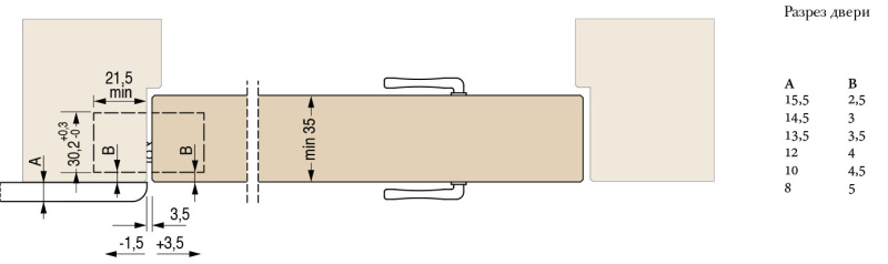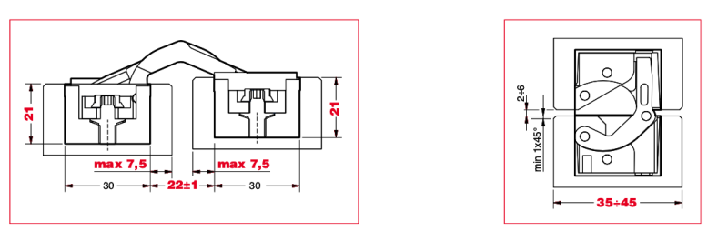 Подходит для дверей с минимальной толщиной 35 мм Повышенная универсальность: зарезка по центру дверей толщиной от 35 до 45 мм Подходит в случае использования декора до 15,5 мм Общая длина 130 мм Глубина всего 21 мм Ширина 30 мм 3D регулировка S.T.A.R.S. Нагрузка: 2 петли — 55 кг, 3 петли — 70 кг Легкая установка и симметричная зарезка Благодаря новому внешнему корпусу из оцинкованного замака петля более устойчива к окислению. Обновлена центральная часть для лучшей работы: более мягкое и четкое движение, подходит для дверей шириной до 1000 мм Универсальная зарезка под петлю. Подходит под петли арт. 1230S, 1235S, 1330S, 832S, 1332S