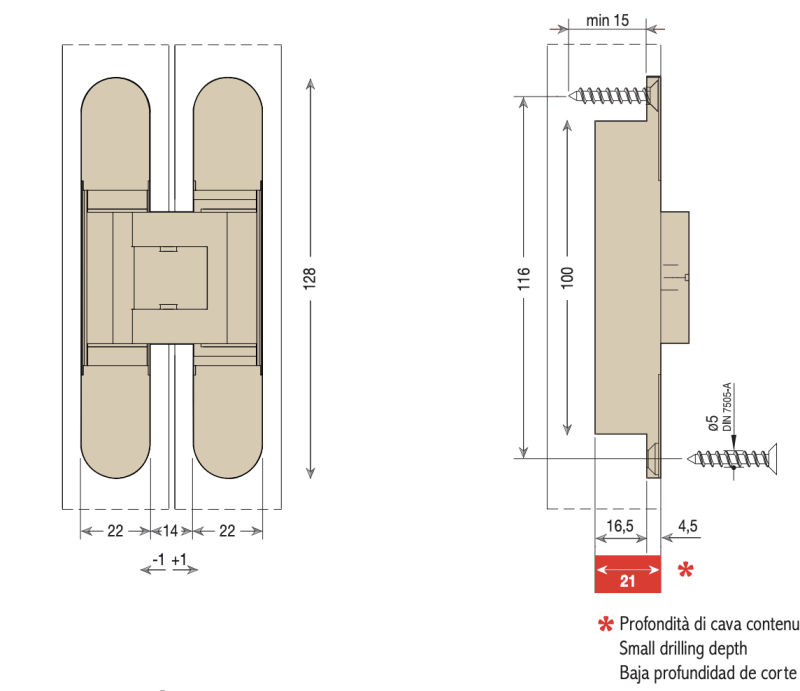 CEAM 1430 скрытая петля универсальная (до 65 кг) COP матовый хром