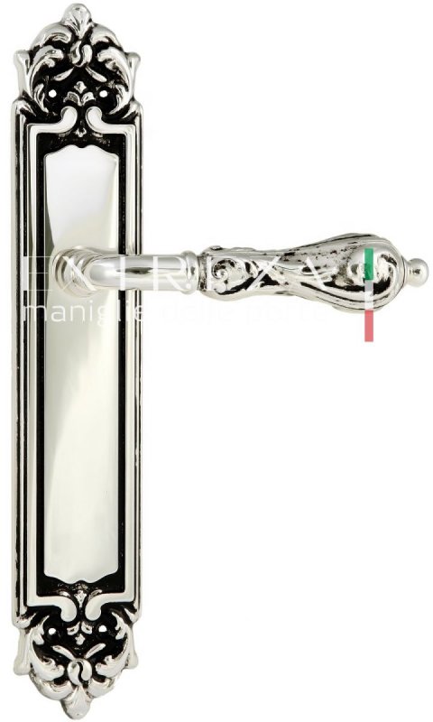 Дверная ручка Extreza "GRETA" (Грета) 302 на планке PL02 натуральное серебро + черный F24