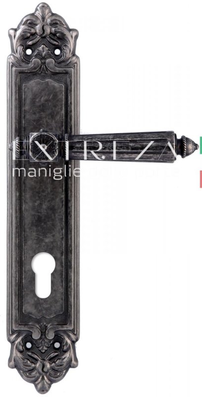 Дверная ручка Extreza "LEON" (Леон) 303 на планке PL02 CYL античное серебро F45