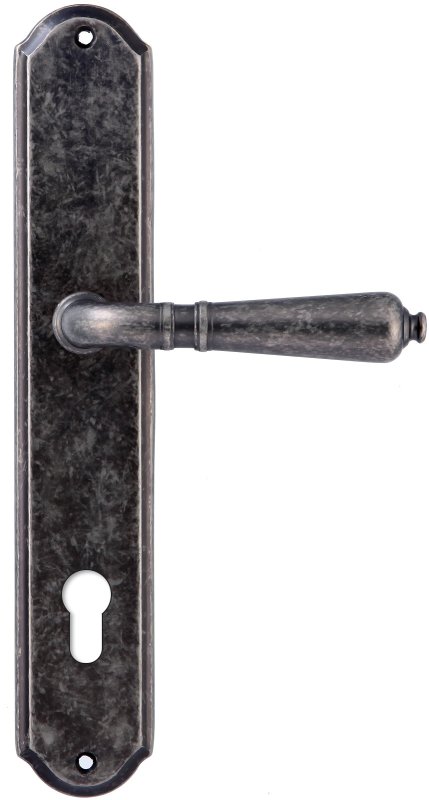 Дверная ручка на планке под цилиндр Extreza Classic "PETRA" 304 PL01-CYL-85 античное серебро F45