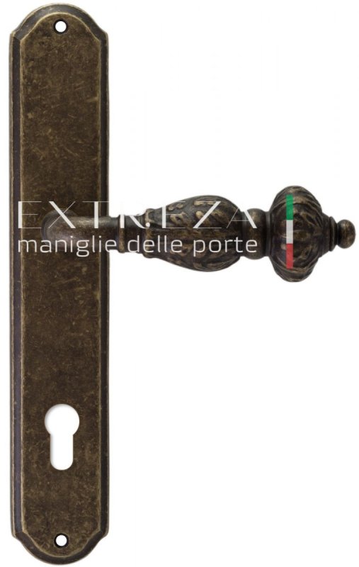 Дверная ручка Extreza "TESLA" (Тесла) 315 на планке PL01 CYL античная бронза F23