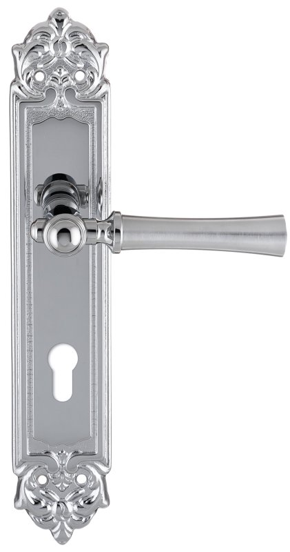 Дверная ручка на планке Extreza "DEZI" 309 PL02-CYL-85-F05-F04 матовый хром / хром / планка хром
