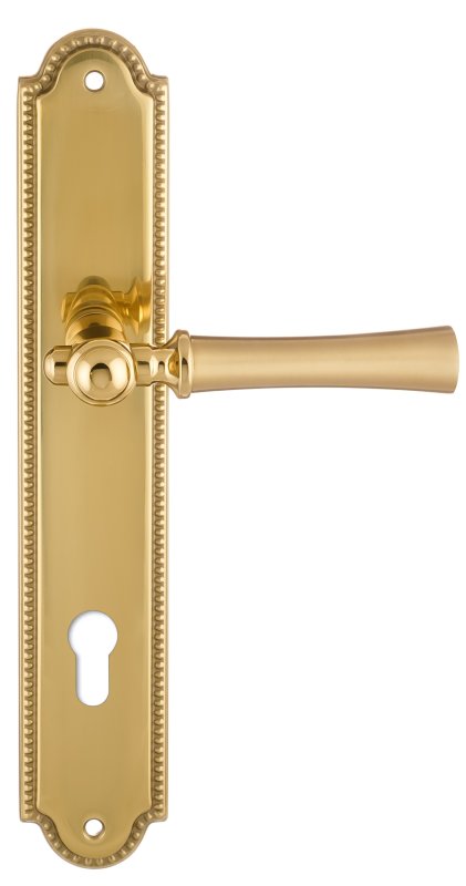 Дверная ручка на планке Extreza "DEZI" 309 PL03-CYL-85-F07-F01 матовая латунь глянец / латунь / планка латунь