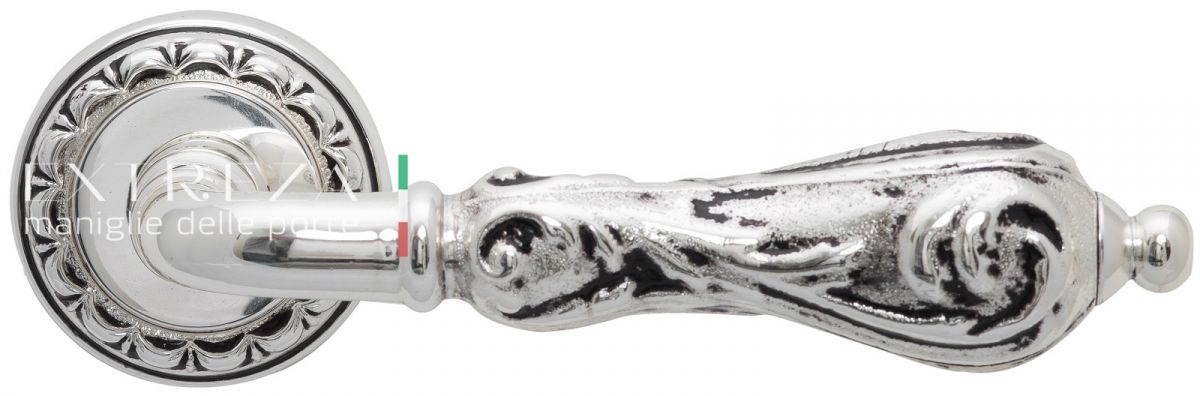 Дверная ручка Extreza "GRETA" (Грета) 302 на розетке R02 натуральное полированное серебро + черный F24