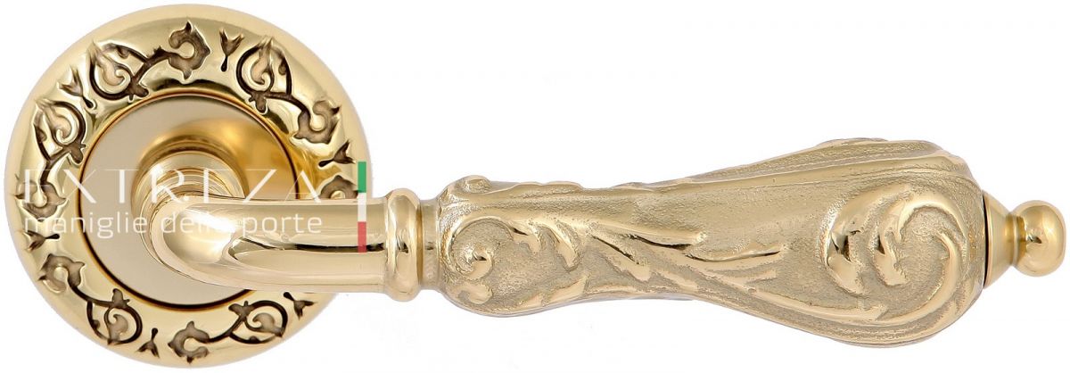 Дверная ручка Extreza "GRETA" (Грета) 302 на розетке R04 полированная латунь F01