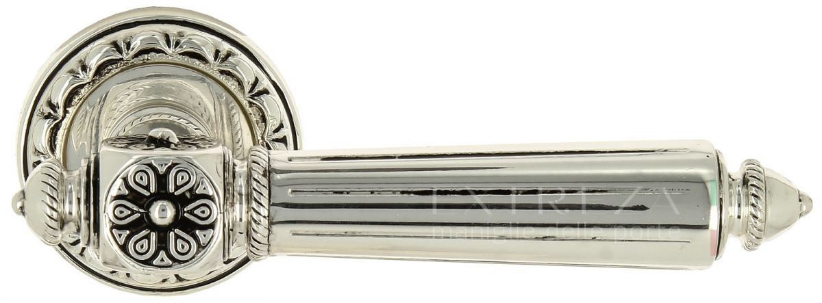 Дверная ручка Extreza "LEON" (Леон) 303 на розетке R02 натур. пол. серебро + черный F24