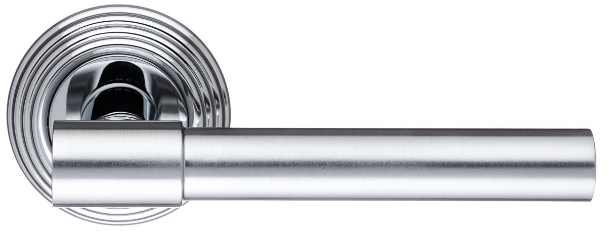 Дверная ручка Extreza "NUVO" 125 на круглой розетке R05 матовый хром / хром F05/F04