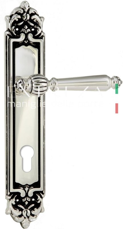 Дверная ручка Extreza "DANIEL" (Даниел) 308 на планке PL02 CYL натуральное серебро + черный F24