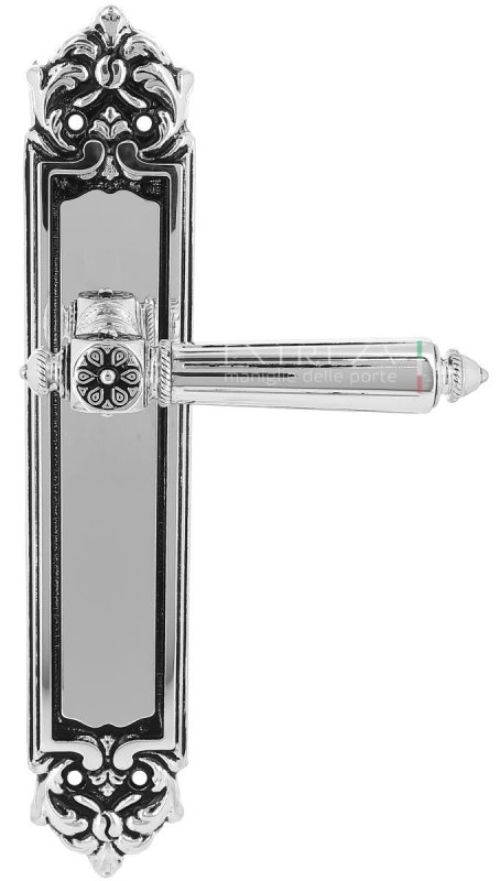 Дверная ручка Extreza "LEON" (Леон) 303 на планке PL02 натуральное серебро + черный F24