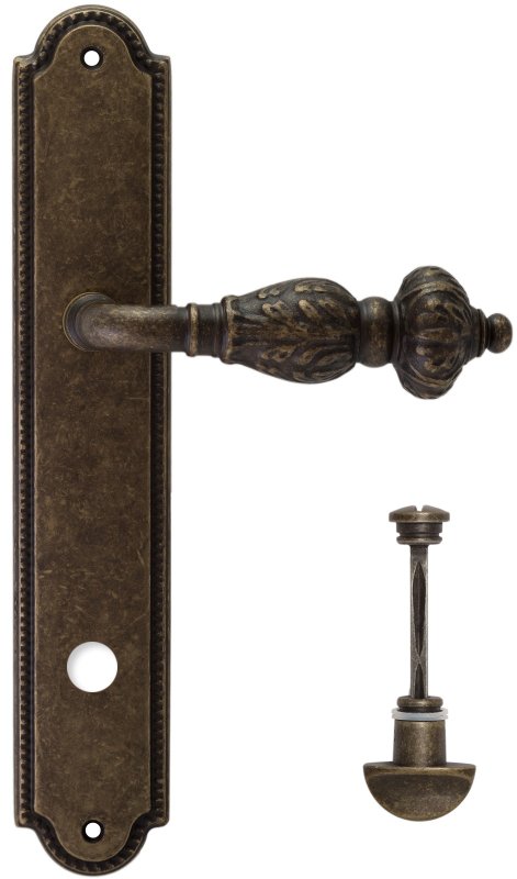 Дверная ручка Extreza "TESLA" (Тесла) 315 на планке PL03 WC античная бронза F23
