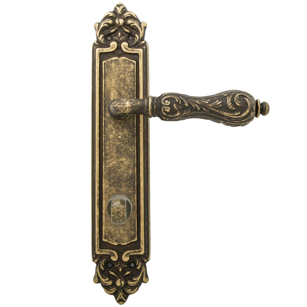 Дверная ручка изготавливается из латуни, в цвете античная бронза, выполнена в стиле классики.