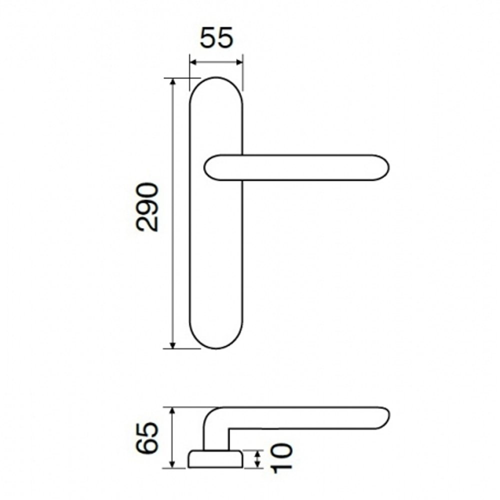 Данная модель выполнена в виде ручки на планке межкомнатной. Подобного рода ручки, как правило, применяются в качестве комплектации межкомнатных дверей. Эта дверная ручка не имеет возможности запирания двери.