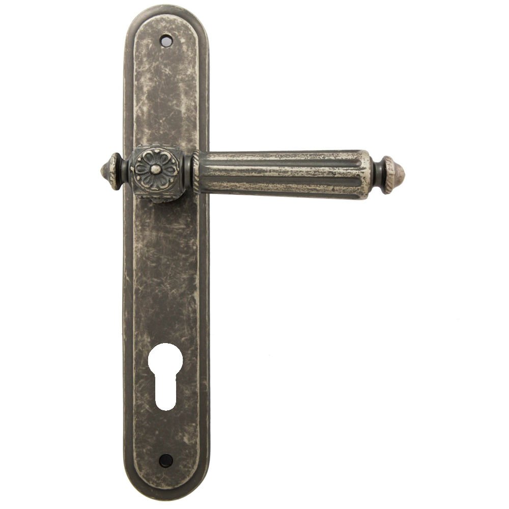 Дверная ручка изготавливается из латуни, в цвете античное серебро, выполнена в стиле классики.
