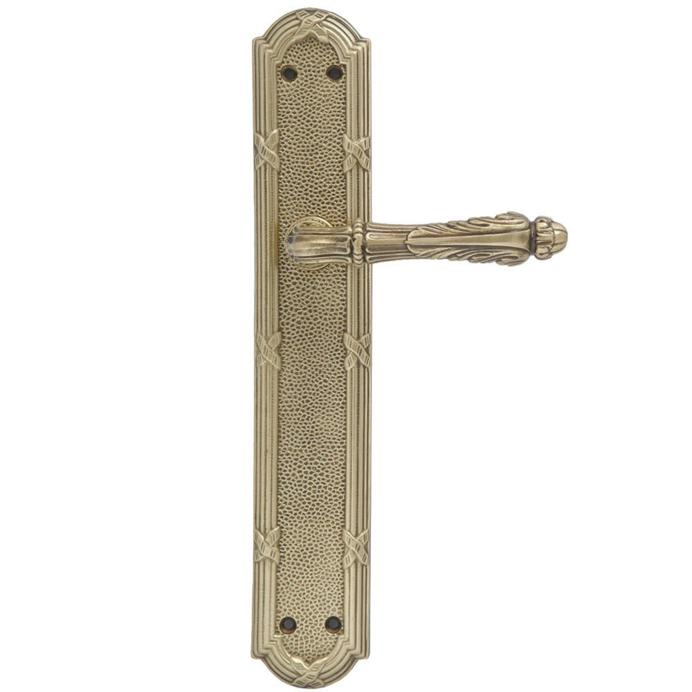 Дверная ручка изготавливается из латуни, в цвете бронза, выполнена в стиле классики.