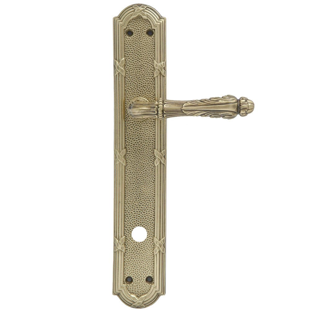 Дверная ручка изготавливается из латуни, в цвете бронза, выполнена в стиле классики.