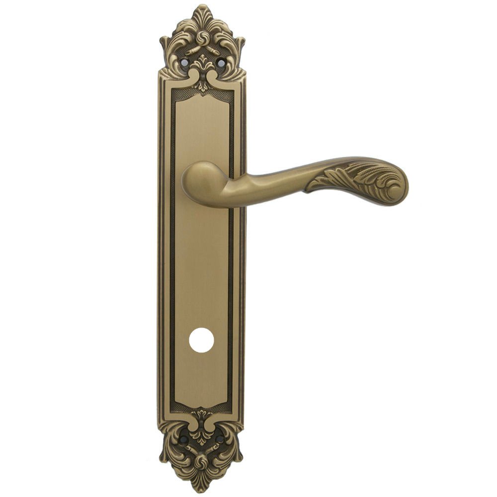 Дверная ручка изготавливается из латуни, в цвете бронза, выполнена в стиле классики.