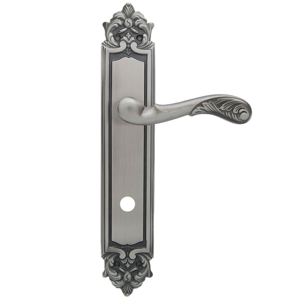 Дверная ручка изготавливается из латуни, в цвете античное серебро, выполнена в стиле классики.