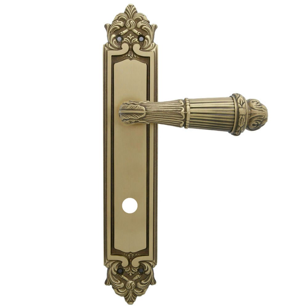 Дверная ручка изготавливается из латуни, в цвете бронза, выполнена в стиле классики.