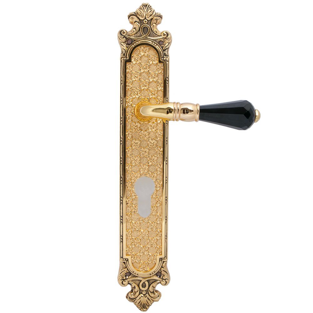 Дверная ручка изготавливается из латуни, в цвете золото с черной патиной / черный кристалл Сваровски, выполнена в стиле классики.