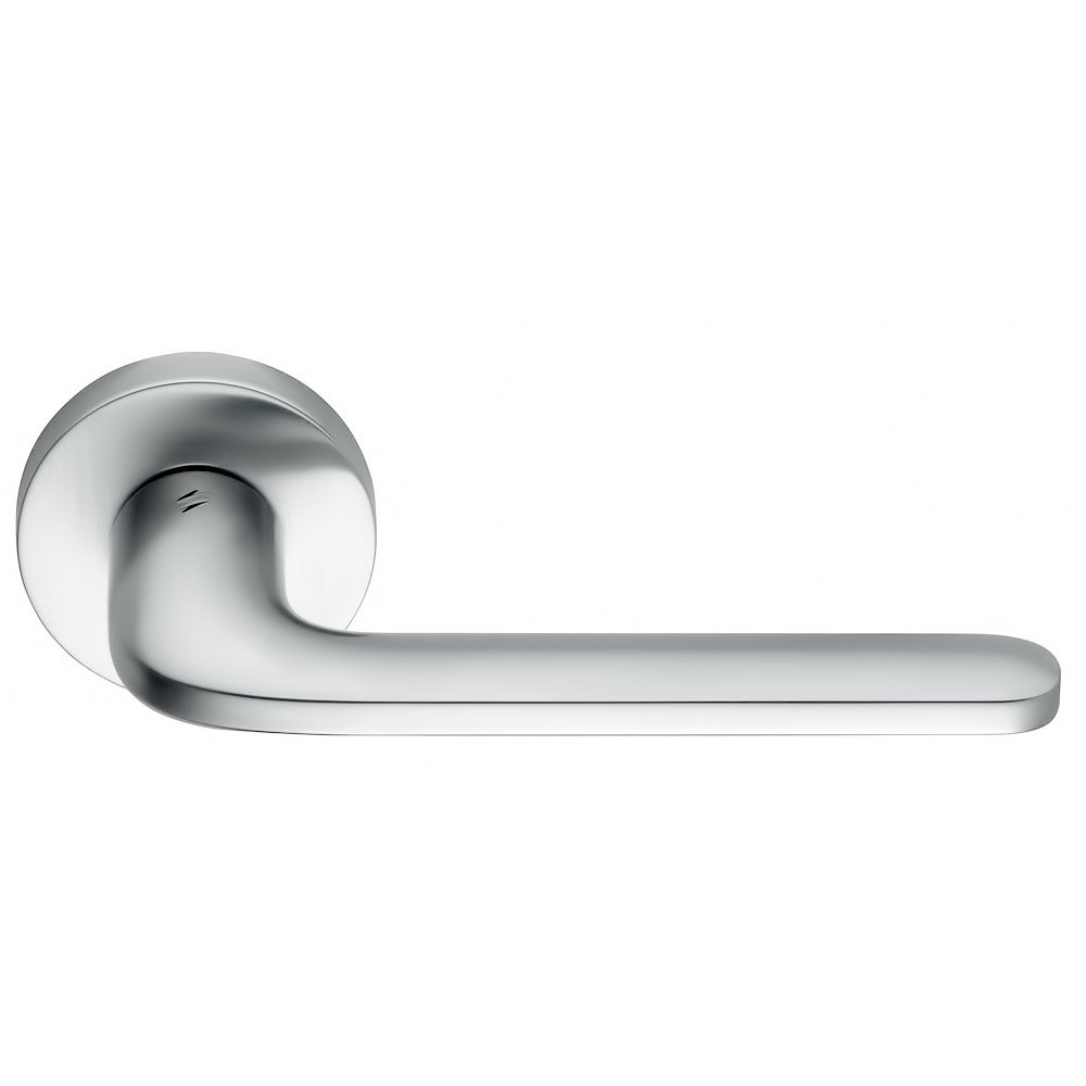 Хромированная дверная ручка ROBOQUATTRO - S (РОБОКВАТРА) от COLOMBO производится на круглой розетке, изготавливается из латуни в цвете хром матовый и выполнена в современном стиле модерн.