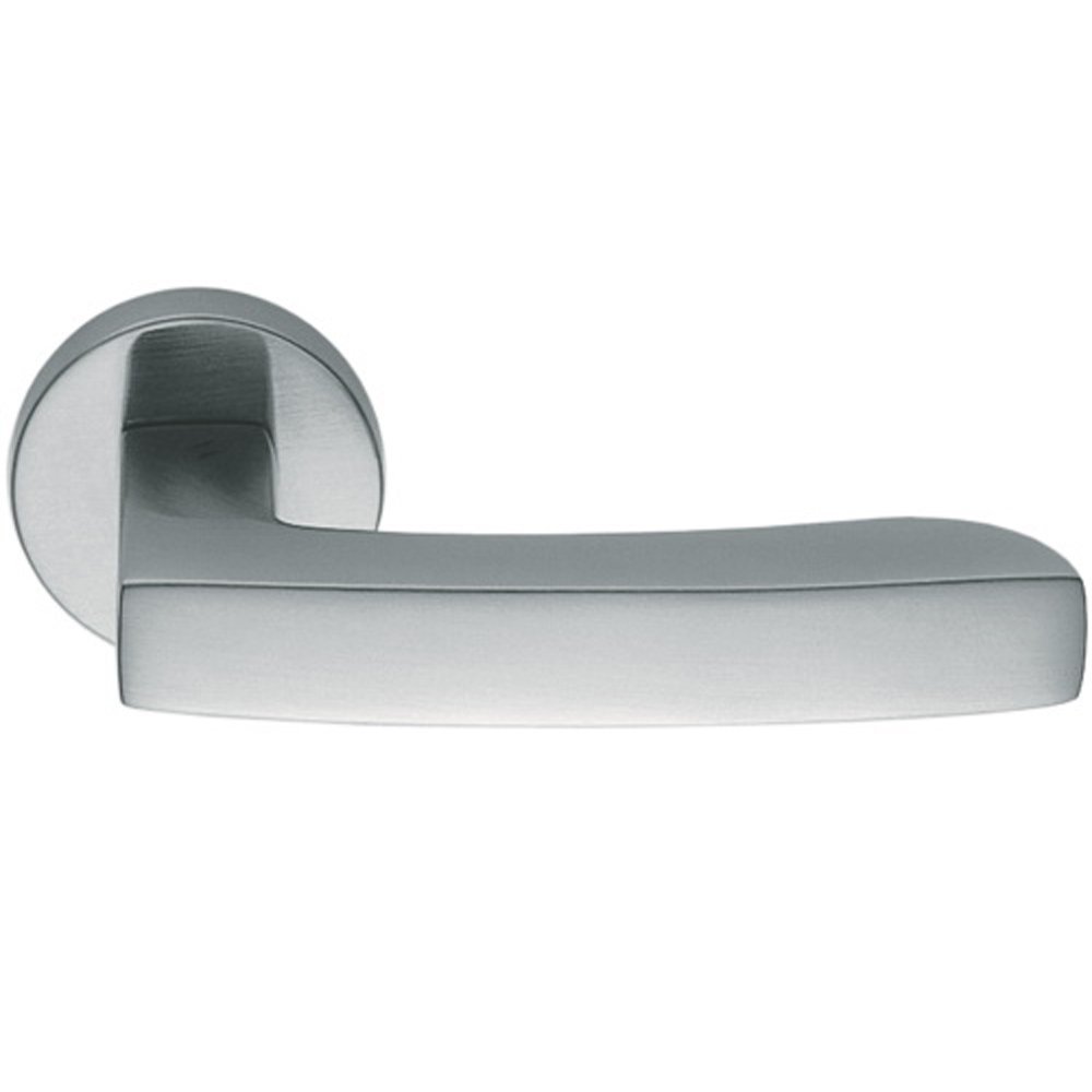 Хромированная дверная ручка VIOLA (ВИОЛА) от COLOMBO производится на круглой розетке, изготавливается из латуни в цвете матовый хром и выполнена в современном стиле модерн.