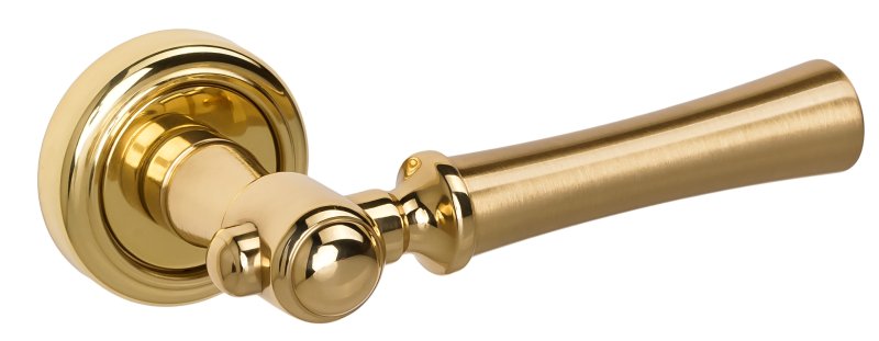 Дверная ручка на розетке Extreza DEZI-R01-F07-F01 (DEZI 309) матовая латунь глянец / латунь / кольцо латунь