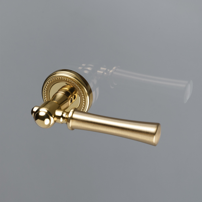 Дверная ручка на розетке Extreza DEZI-R03-F07-F01 (DEZI 309) матовая латунь глянец / латунь / кольцо латунь