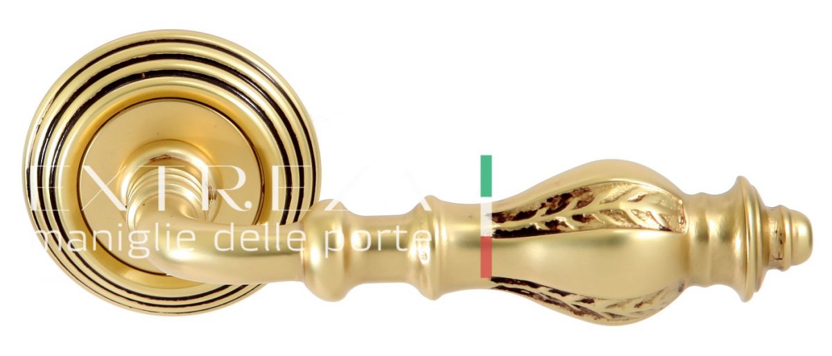 Дверная ручка Extreza "EVITA" (Эвита) 301 на розетке R05 французское золото + коричневый F59