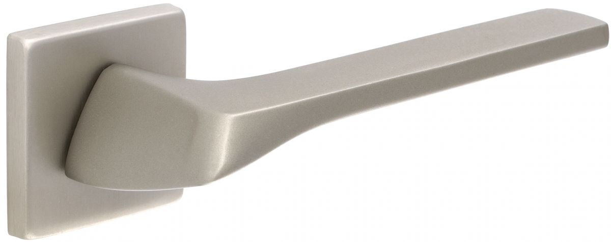 Дверная ручка Extreza Hi-Tech "ERICA" (Эрика) 119 на квадратной розетке R11 матовый никель F20
