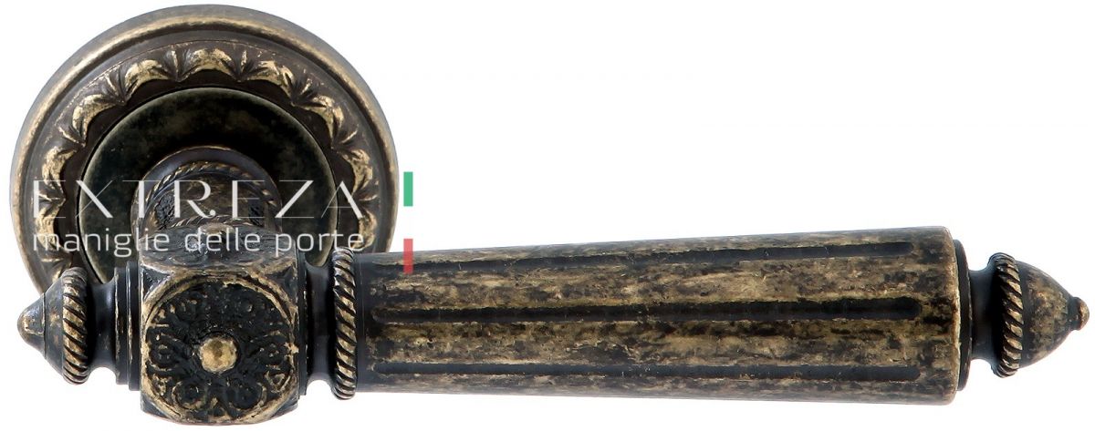 Дверная ручка Extreza "LEON" (Леон) 303 на розетке R02 античная бронза F23