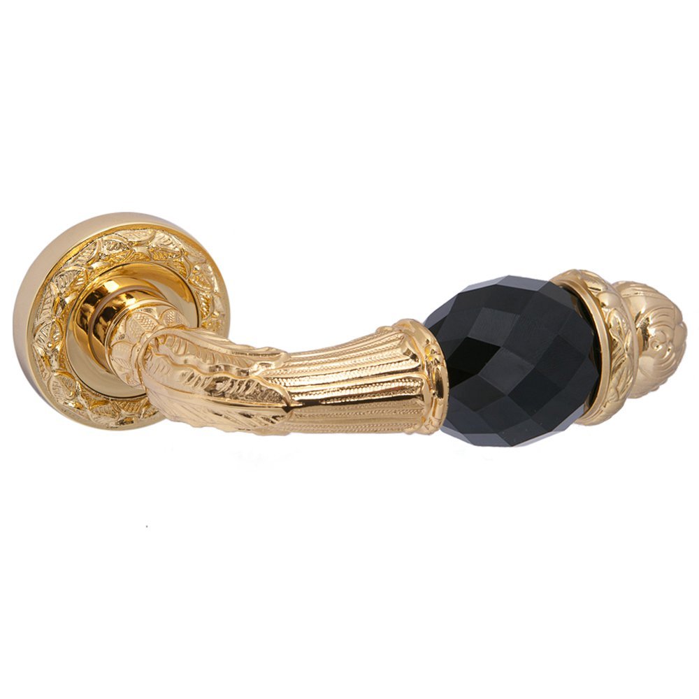 Круглая резная розетка, вариант цветового решения: золото 24К, черный кристалл Сваровски.