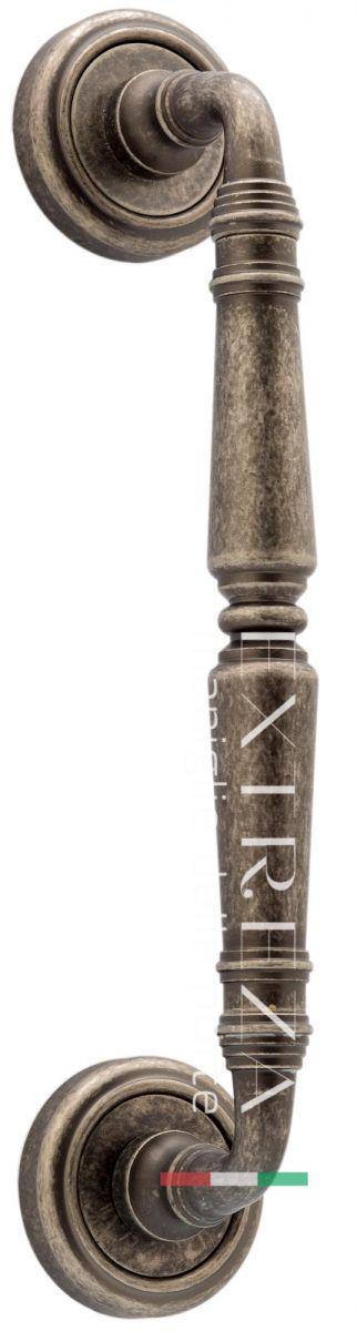 Ручка дверная скоба Extreza "PETRA" (межос. 210 мм) на розетке R01 античное серебро F45