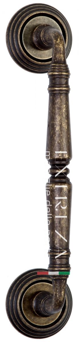 Ручка дверная скоба Extreza "PETRA" (межос. 210 мм) на розетке R05 античная бронза F23