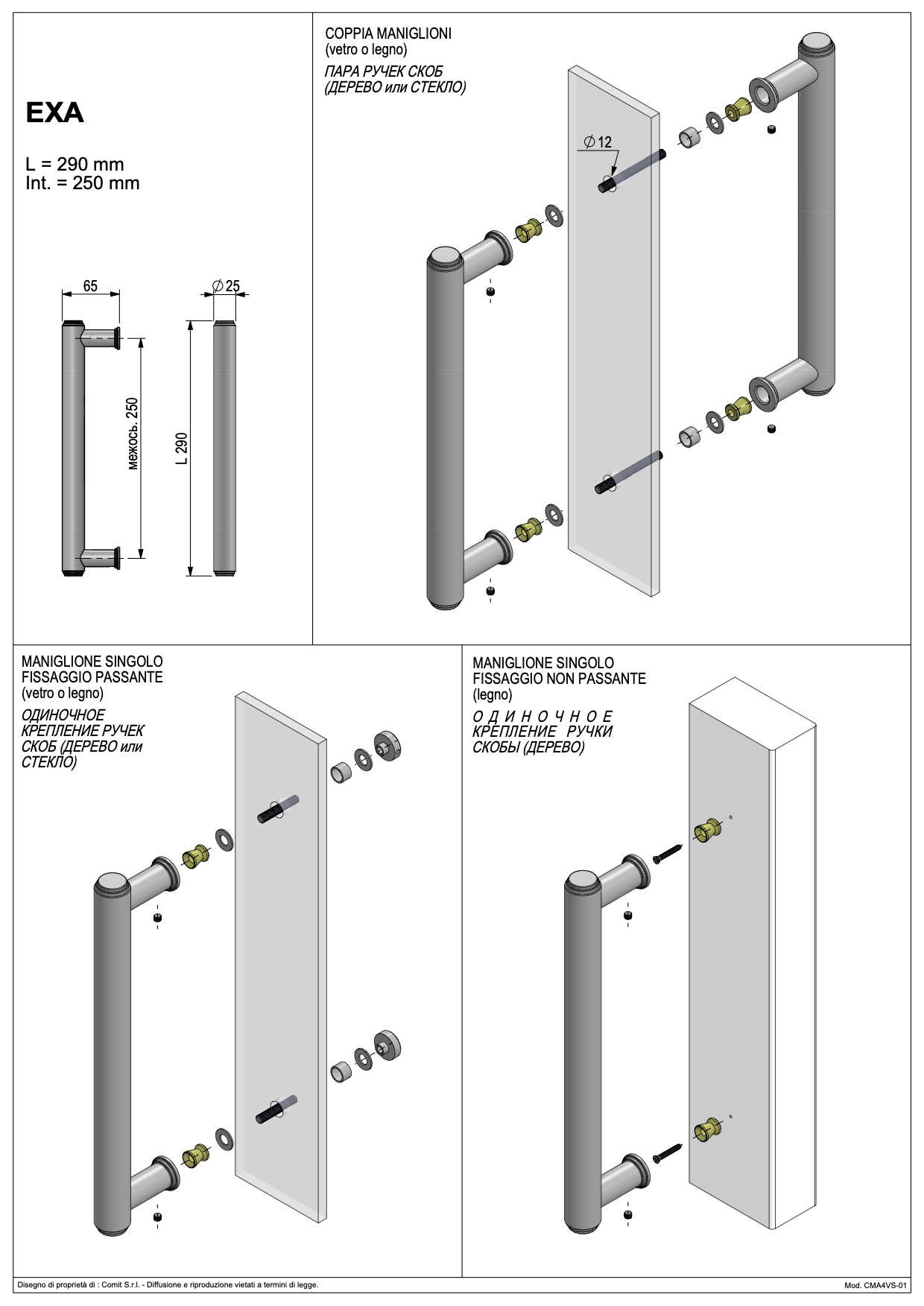 Дверная ручка-скоба EXA 290мм (250мм) Venezia
