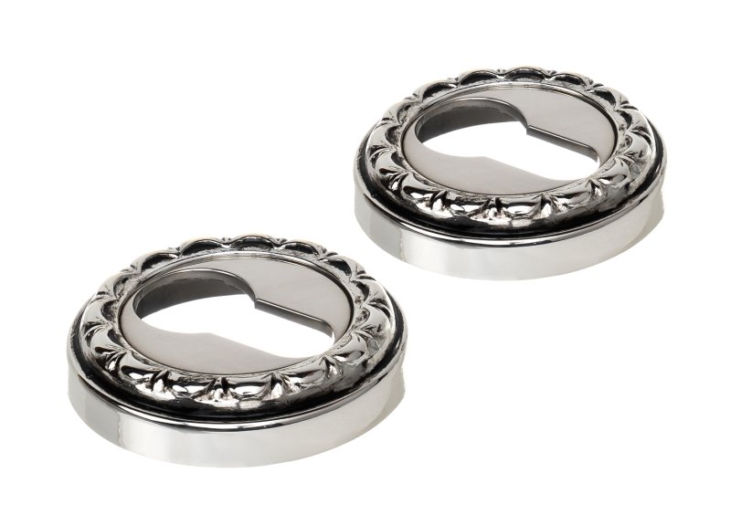 Накладка дверная под цилиндр Extreza CYL-R02 натуральное полир. серебро + черный F24